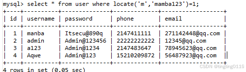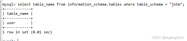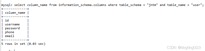 查看user表中的字段: