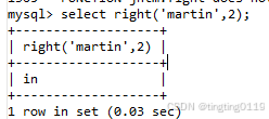 mysql> select right('martin',2);