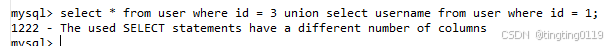 9.1 ## 子查询语句的字段需要和主查询语句的字段一致,否则报错: