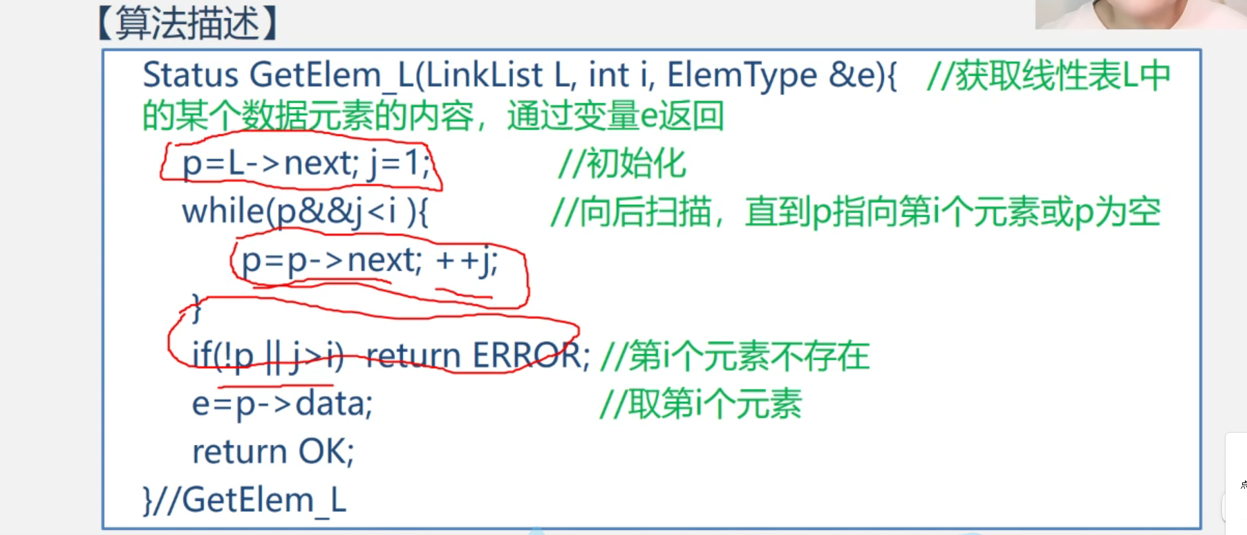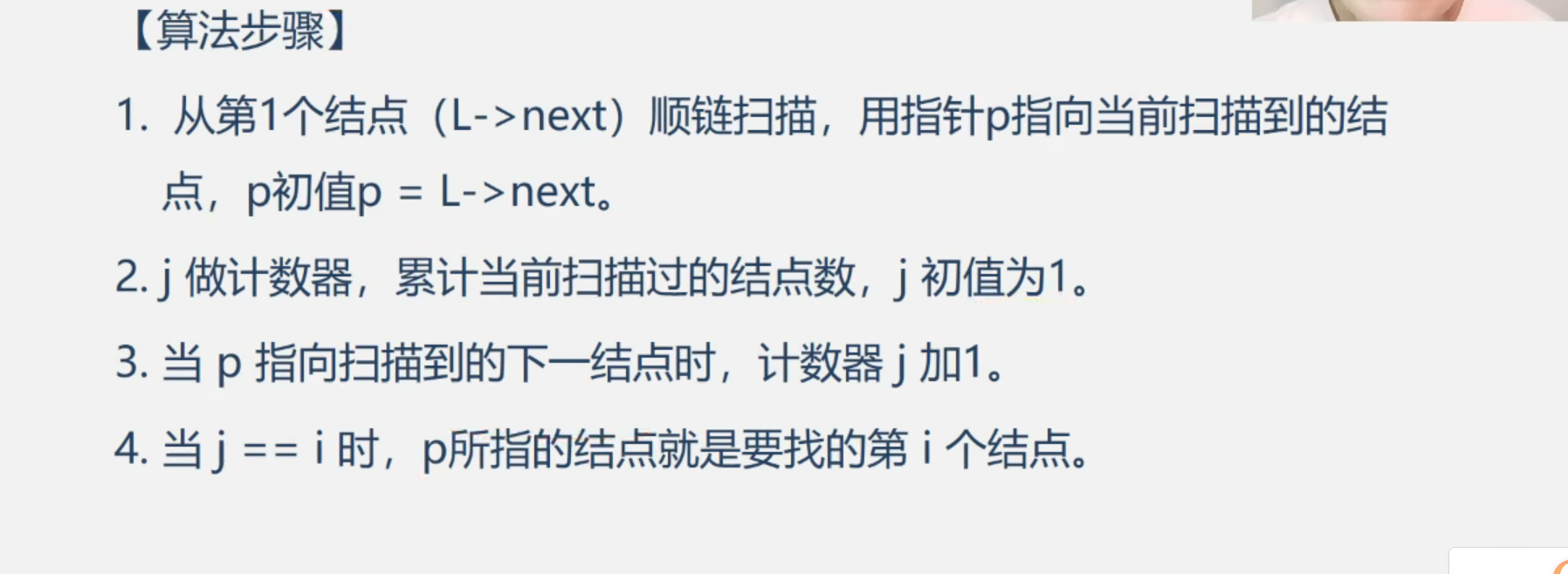算法5:取值--取单链表中第i个元素的内容(带头结点)
