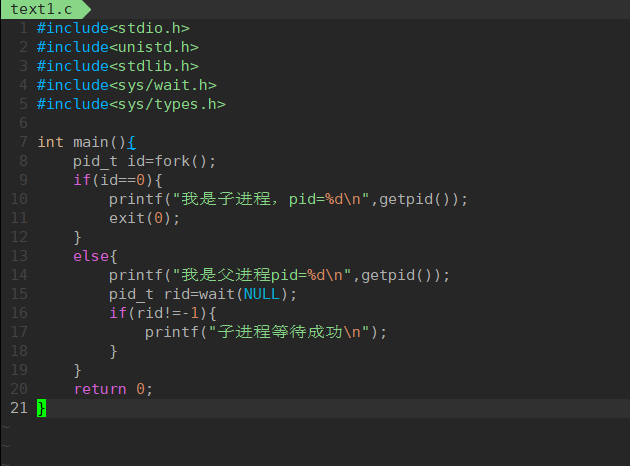 其给父进程返回子进程的pid,给子进程返回0,出错返回-1。