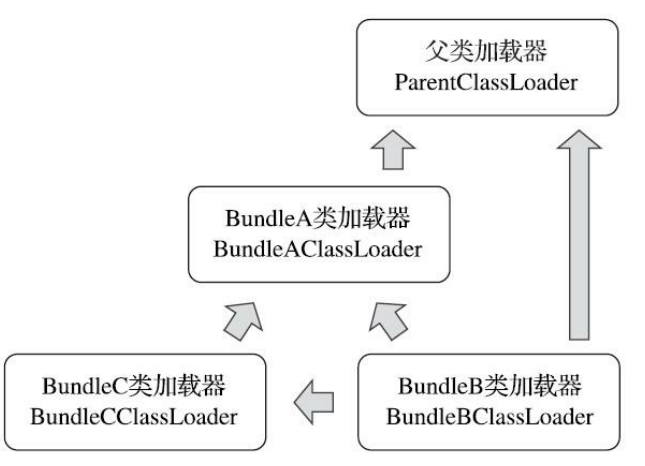 传统的双亲委派模型是树形结构 ------加载请求自下而上逐级委派,层级关系固定。而OSGi的Bundle类加载器之间是一种网状结构 ------每个Bundle都可以声明它所依赖的Java Package(通过Import-Package),也可以声明它允许导出的Java Package(通过Export-Package)。当一个Bundle需要某个Package时,加载请求会被委派给声明导出了该Package的Bundle来完成。