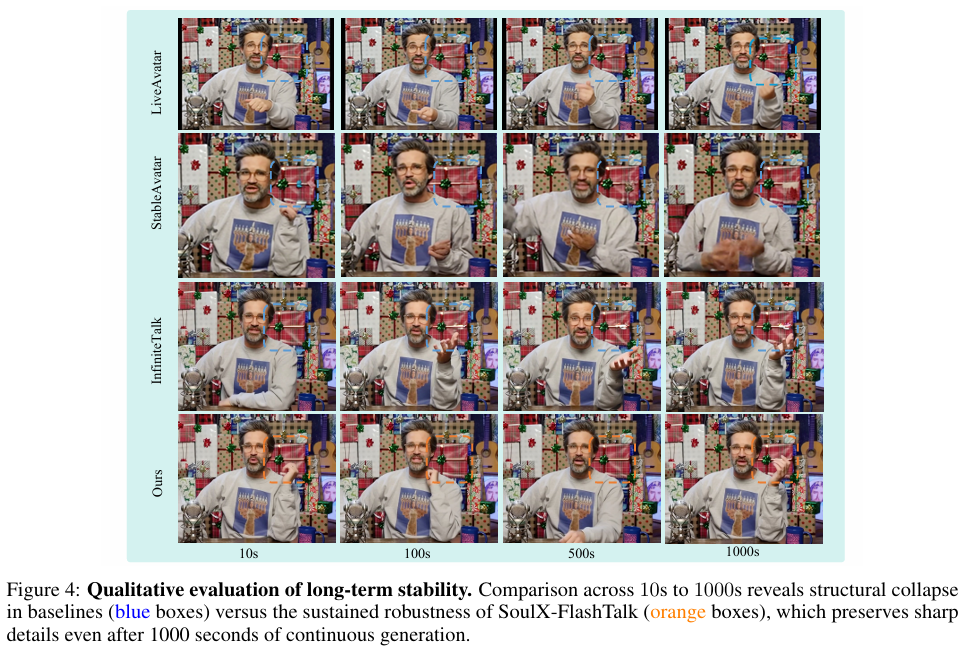 这也是为什么 SoulX-FlashTalk 在长视频 benchmark 上能明显优于很多 baseline。