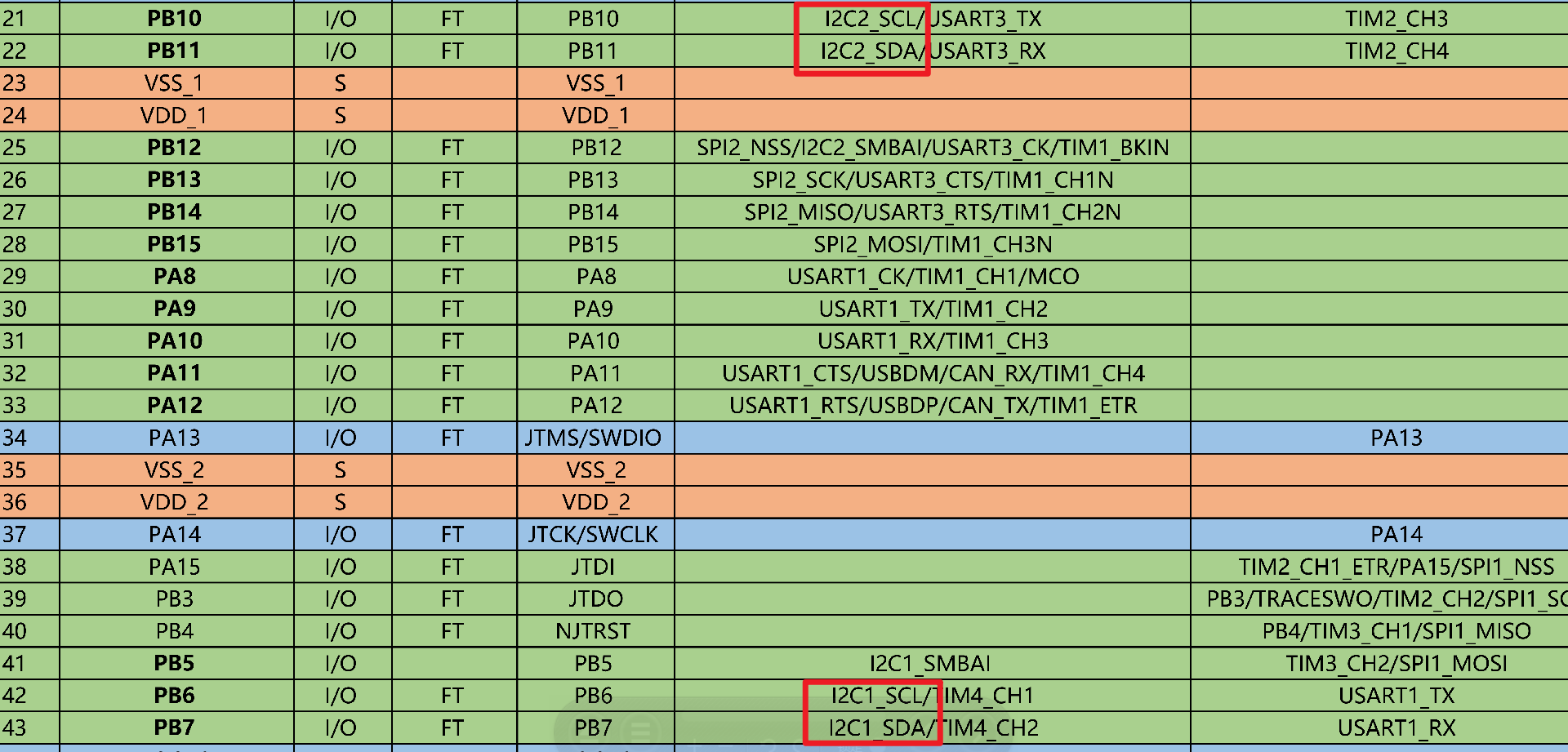 GPIO_Init(GPIOB, &GPIO_InitStructure); //将PB10和PB11引脚初始化为复用开漏输出