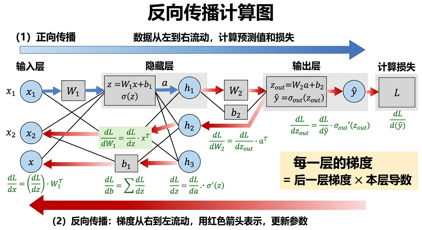 这就是反向传播的工程美妙之处:它把"训练多层网络"这个看似极其复杂的问题,变成了一个高效、可并行、可自动化的算法。