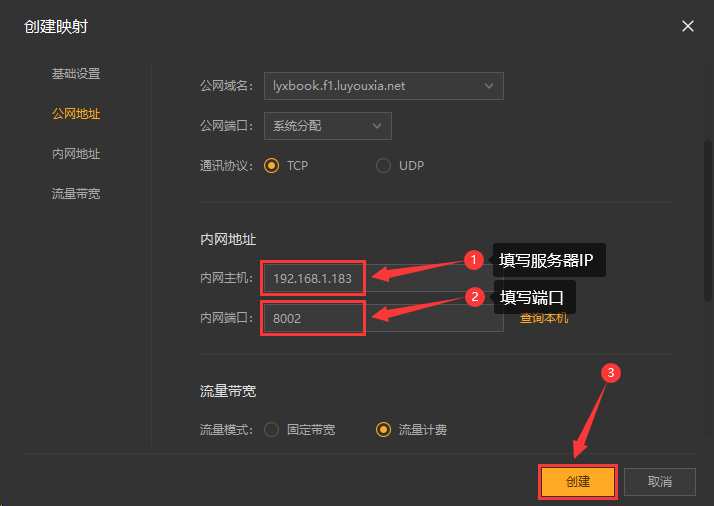 10,在内网地址填写你的服务器 IP 和 Invoice Ninja 端口 8002 后点击【创建】按钮,如下图。