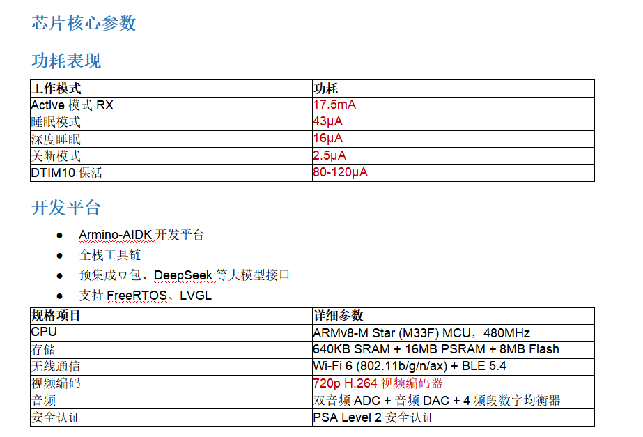 1、超低功耗:深度睡眠16μA,关断2.5μA,路由器保活<150μA,适合电池供电的眼镜设备