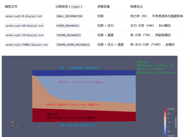 3.1 理解单场(力学)到多场(HM、HC、TM、THM)的物理耦合机制;掌握OGS输入文件中不同物理过程的配置方法;能够通过递进式练习,分析各耦合场对盐丘变形的影响。
