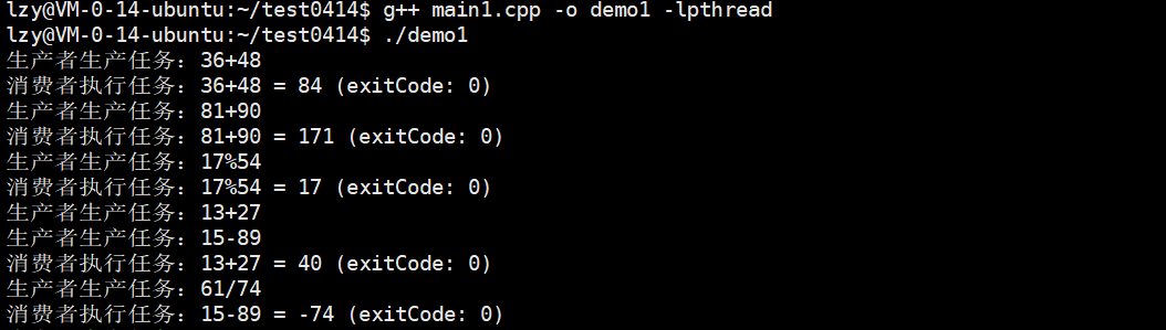 cout << "生产者生产任务:" << x << oper << y << endl;