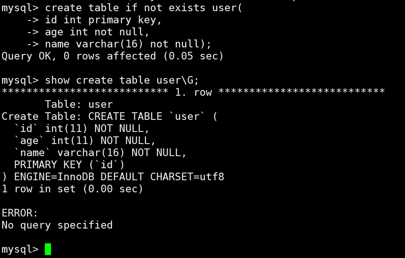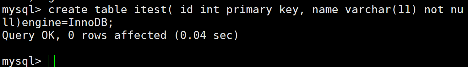 create table user1(id int primary key, name varchar(30));