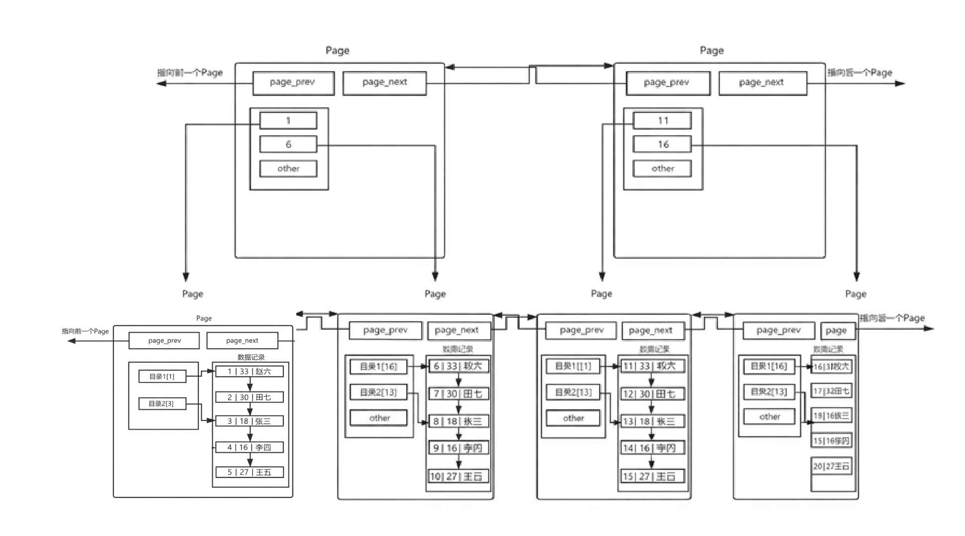 随着数据量的增大,MySQL中必定会有多个页来存储数据,然后通过指针的方式将所有的page组织起来。