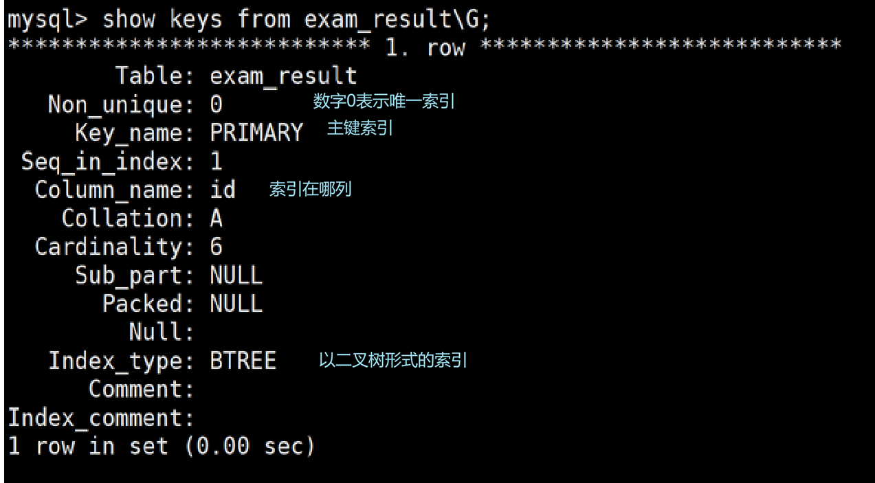show keys from 表名