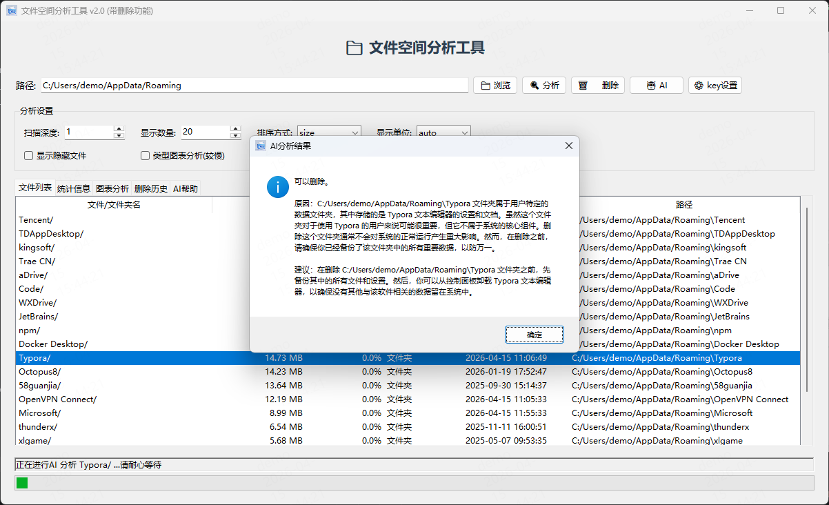 纯python写的,一个功能强大的 Windows 文件夹空间分析工具,帮助您快速了解磁盘空间使用情况,并支持便捷的文件管理功能。支持AI分析文件夹。