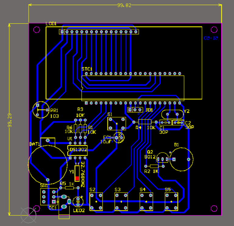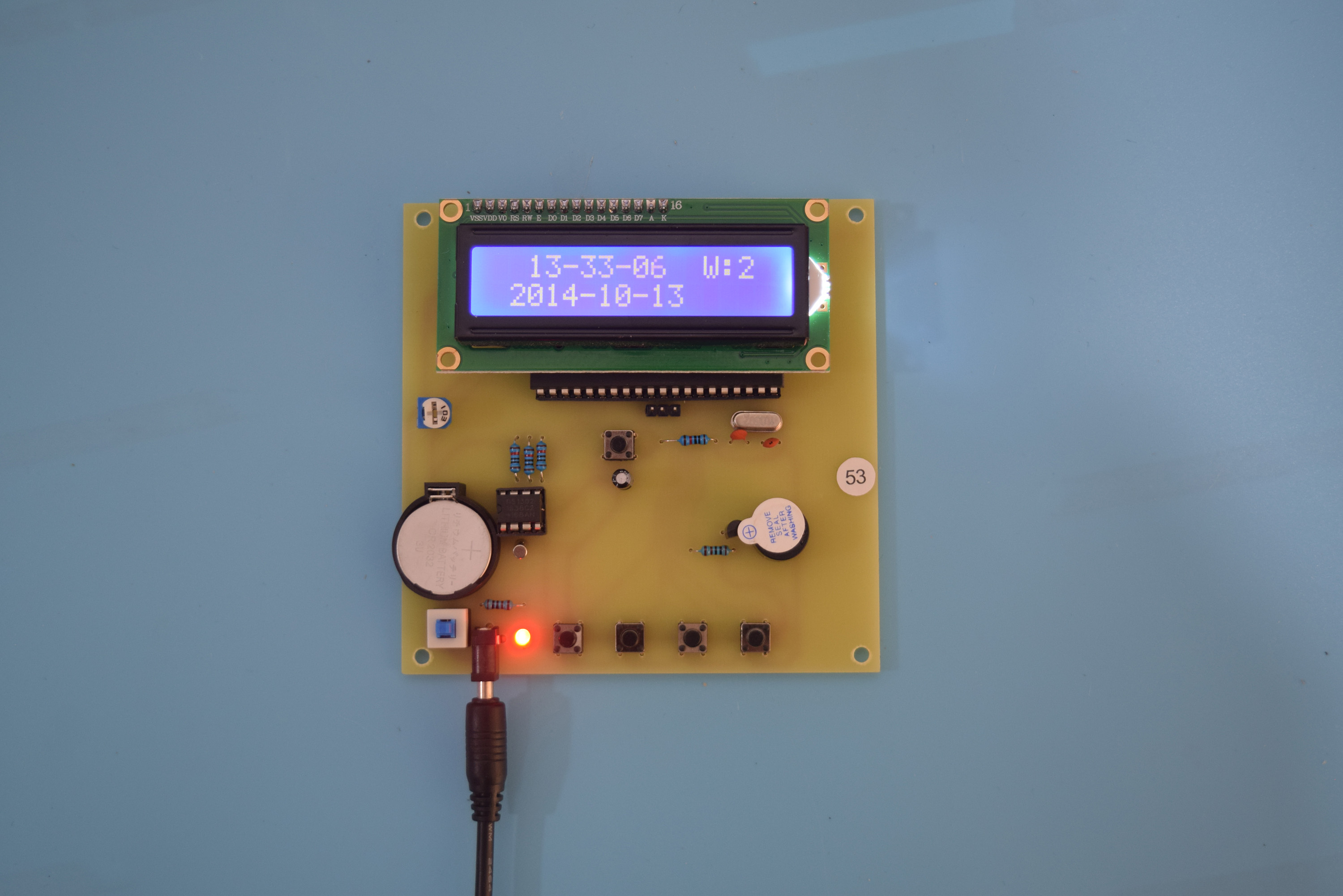 由51单片机+DS1302时钟+蜂鸣器+按键及电源等构成