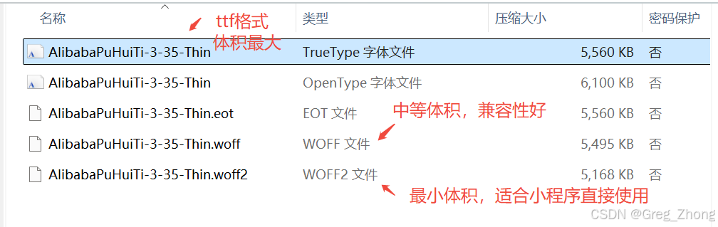 小程序是支持ttf、woff、woff2三种格式字体直接使用,但是 推荐使用woff或woff2格式