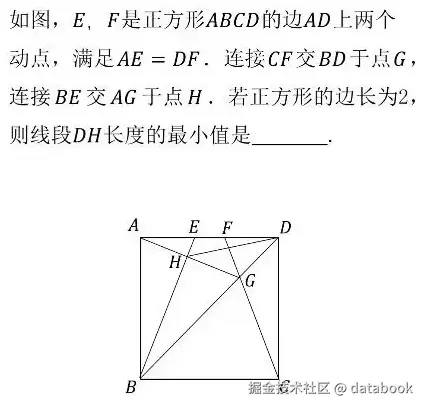 这个题目中,当点 <math xmlns="http://www.w3.org/1998/Math/MathML"> E E </math>E和 <math xmlns="http://www.w3.org/1998/Math/MathML"> F F </math>F在线段 <math xmlns="http://www.w3.org/1998/Math/MathML"> A D AD </math>AD上移动时,点 <math xmlns="http://www.w3.org/1998/Math/MathML"> H H </math>H和 <math xmlns="http://www.w3.org/1998/Math/MathML"> G G </math>G都随之变换。