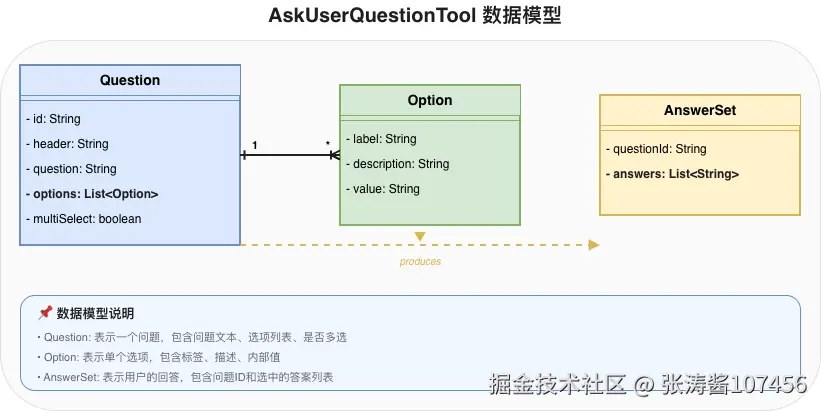 Agent如何在执行过程中"停下来问用户"?AskUserQuestionTool给出了标准化的答案------一种结构化的问答协议,让Agent能够主动发起交互、获取用户决策,从而实现人机协作的最佳实践。