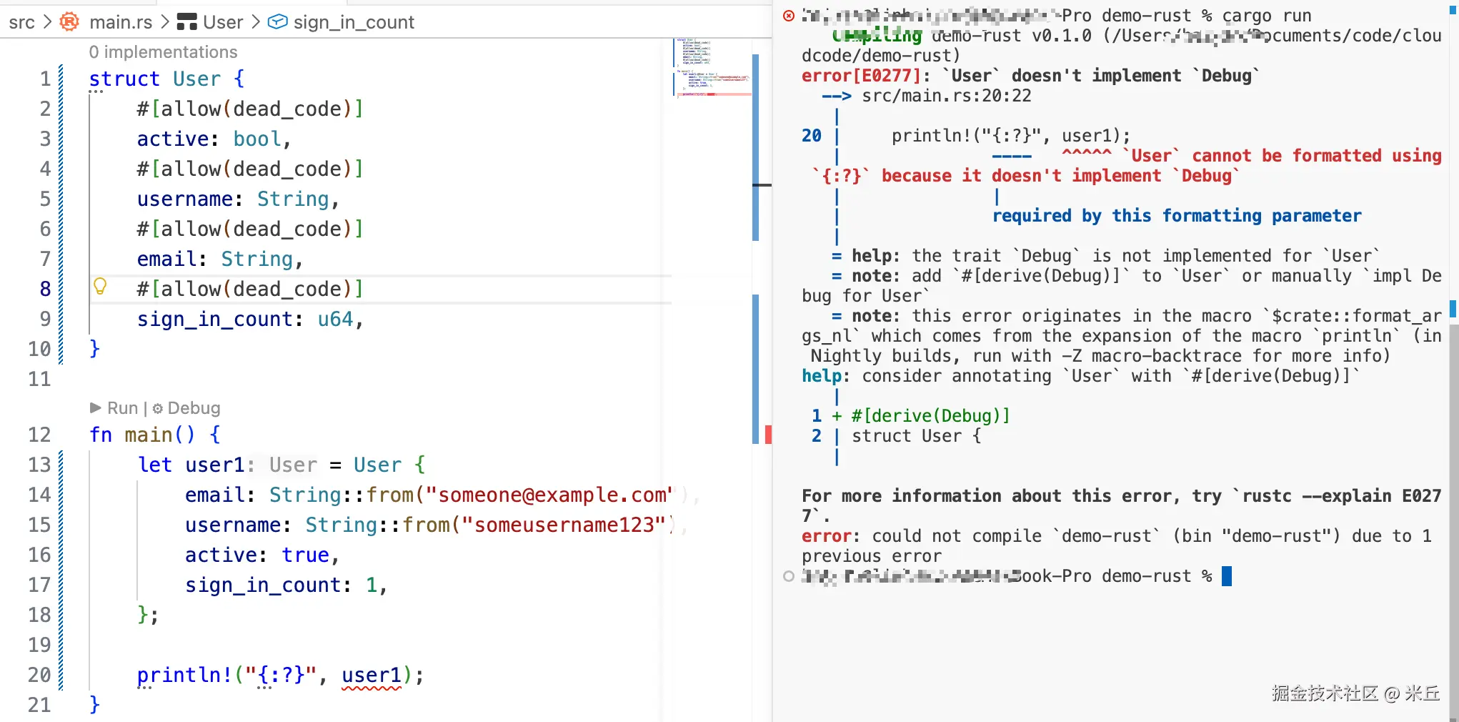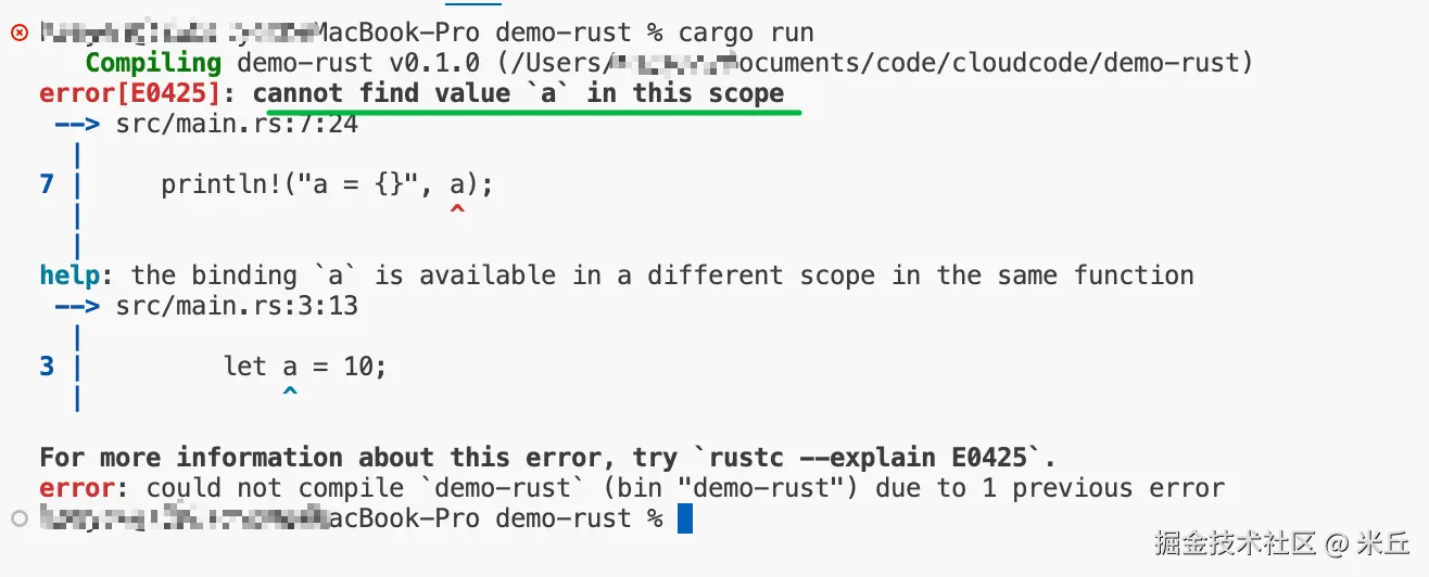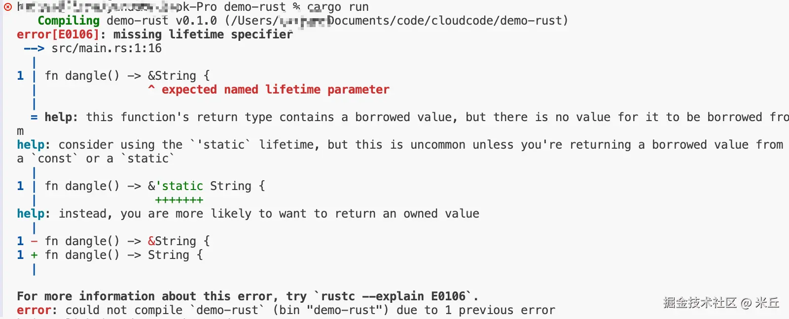 如果应用这三条规则后,仍然无法确定输出引用的生命周期,编译器就会报错,要求你手动标注。