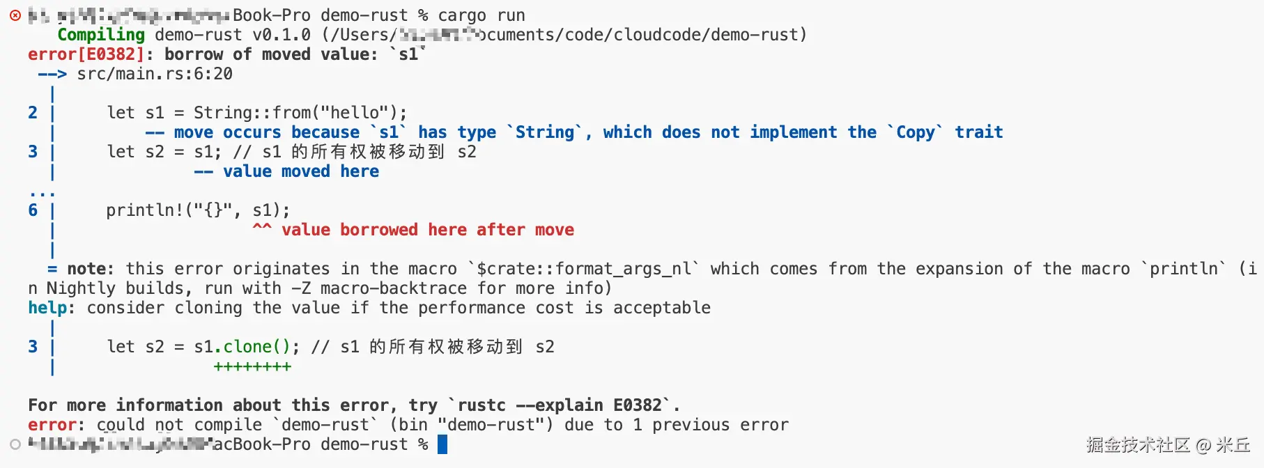 let owned = *s; // 从 Box 中移出 String(String 未实现 Copy)