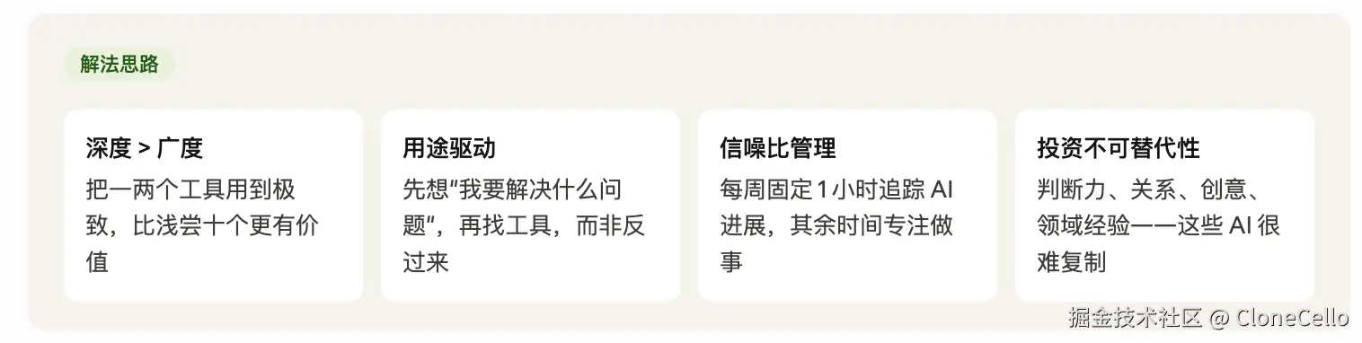 - 不是 AI 替代你,而是你用 AI 替代重复性的自己