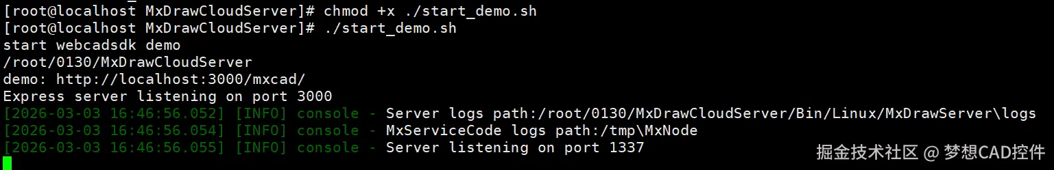 (脚本会自动启动1337端口的CAD核心服务与3000端口的Web服务)
