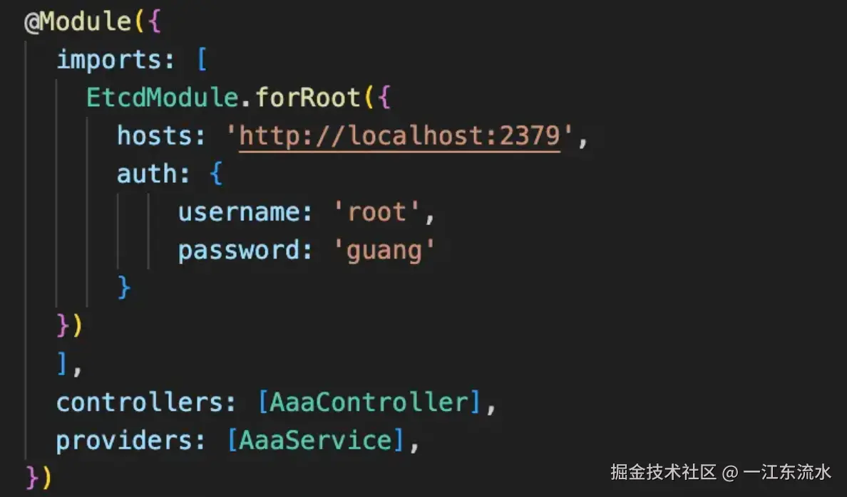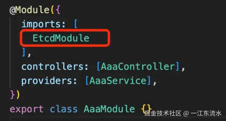 然后 AaaModule 引入 EtcdModule 的方式也改下: