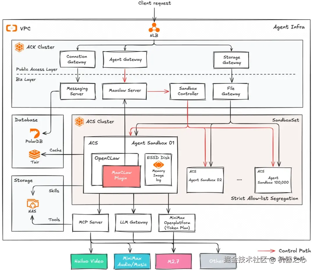 当数以十万计的智能体并发执行这类高权限与多步骤的复杂任务时,传统的系统架构往往难以支撑。业界十分好奇:MiniMax 是如何扛住 MaxClaw 和 MaxHermes 如此庞大的流量洪峰并保证业务稳定的?