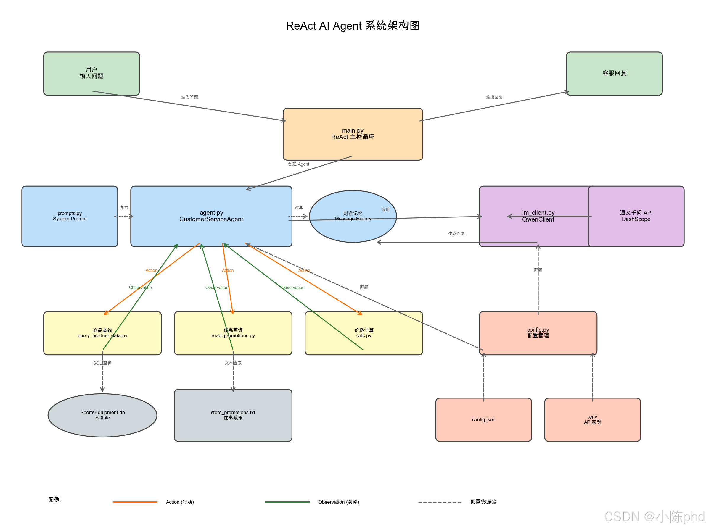 因此,v2 版本的核心目标不是简单"接入 LangChain",而是构建一个 具备工具感知、上下文保持、业务规则约束与安全计算能力 的电商客服 Agent。