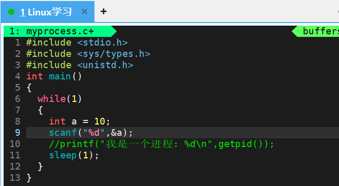 当程序中保留 printf 与 sleep 语句时,进程会在循环中执行输出操作并主动等待。printf 属于典型的输出 I/O 操作 ,即进程通过系统调用向终端设备写入数据,由设备驱动最终刷新显示到屏幕;而 sleep 则让进程主动等待指定时长。