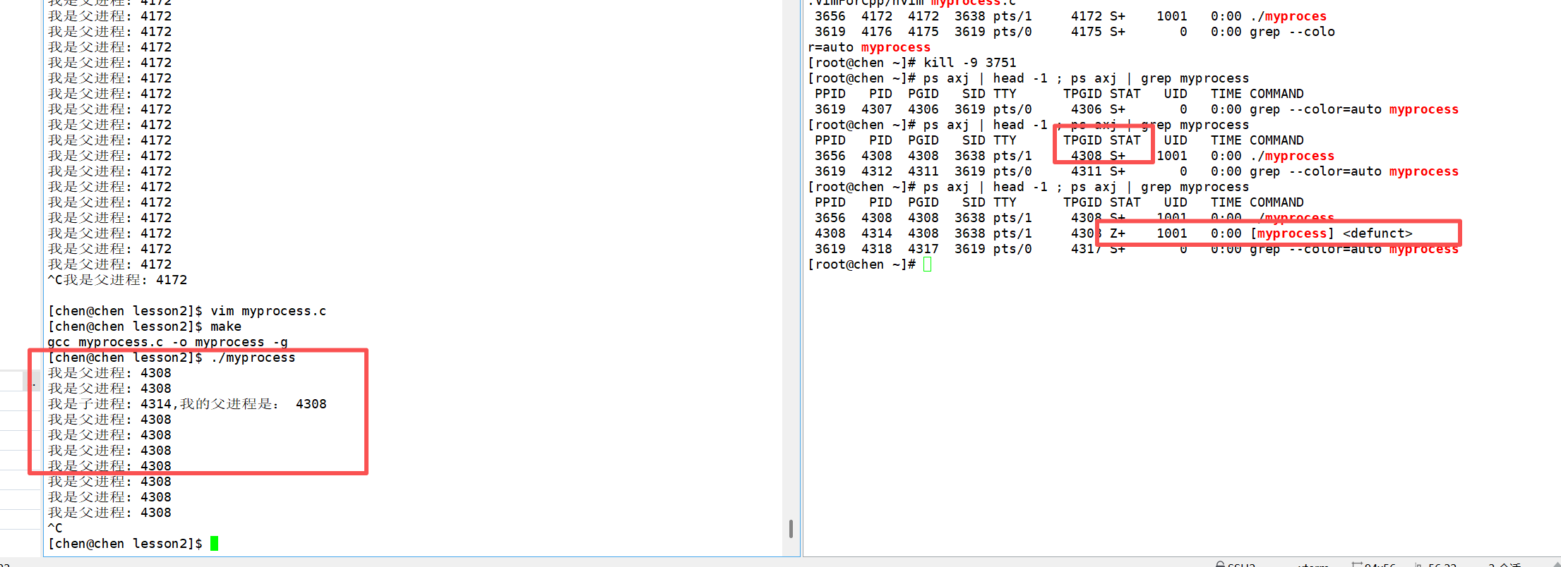 我们再将 myprocess.c 文件中的代码修改一下: