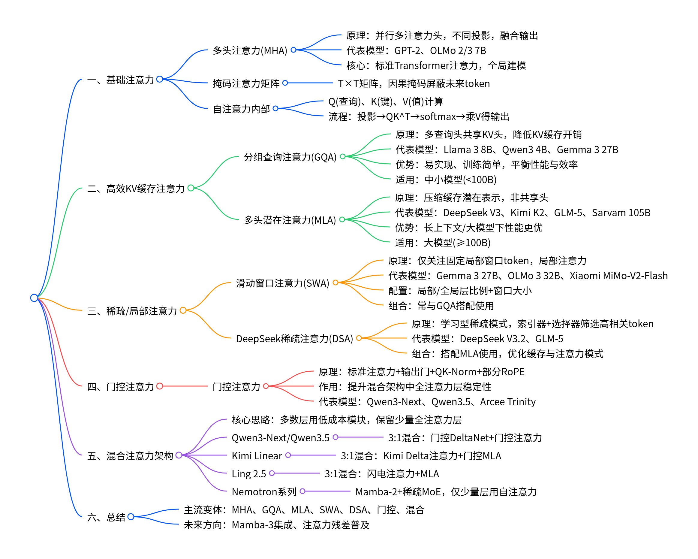 当然,文献中还有许多其他(大多是小众的)注意力机制变体,我在这里并未提及。本文重点关注的是目前最先进的(开源)模型中使用的那些机制。