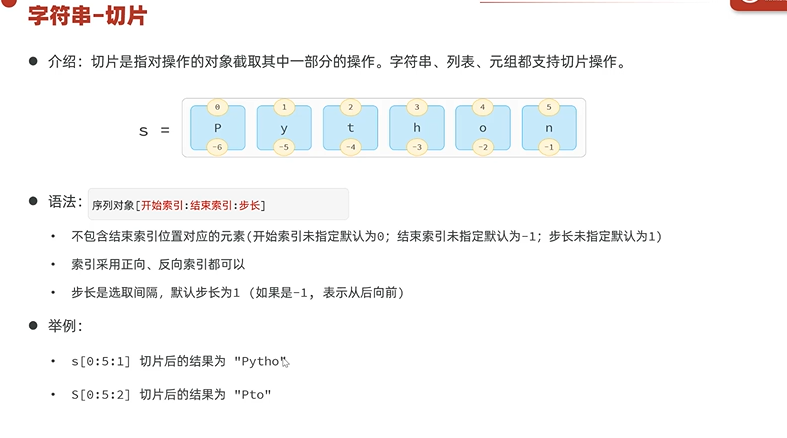切片只包含开始索引,不包含结 束索引,左闭右开