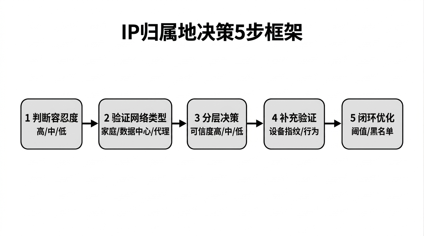 5步决策流程图,从判断容忍度到闭环优化,IP归属地业务应用框架