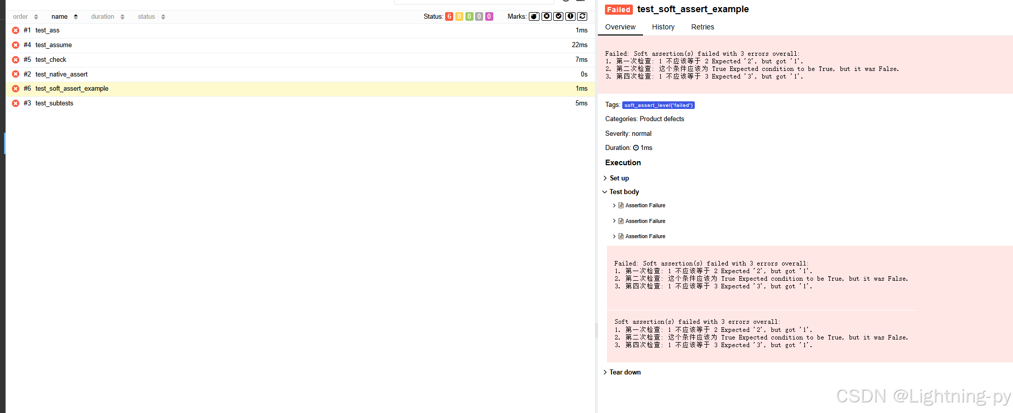 def test_assume():#需要安装 pytest-assume,allure报告显示2个失败