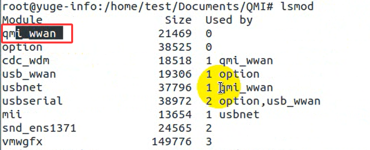 再insmod qmi_wwan.ko,之后可通过lsmod确认驱动加载成功