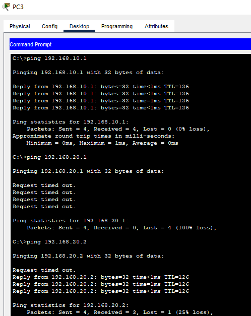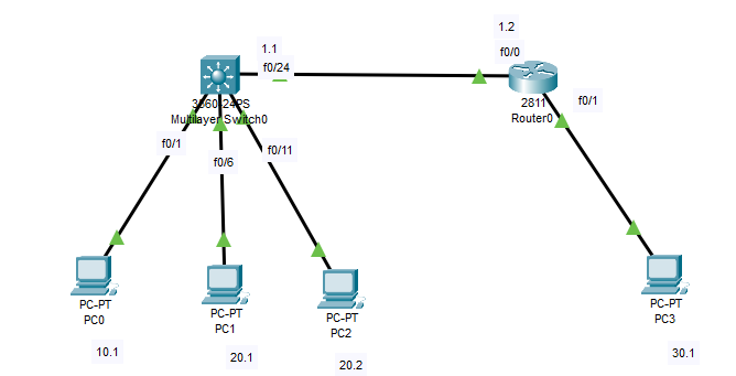 | PC3 | 192.168.30.1 | 255.255.255.0 | 192.168.30.254 |