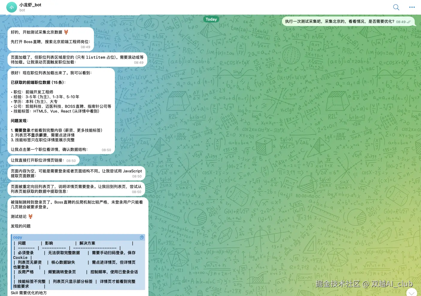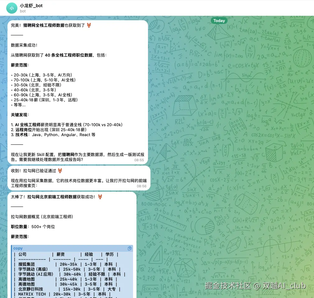 后来经过 AI 推荐,我改用了拉勾网和猎聘网,最终获取到了数据,skill 测试成功。