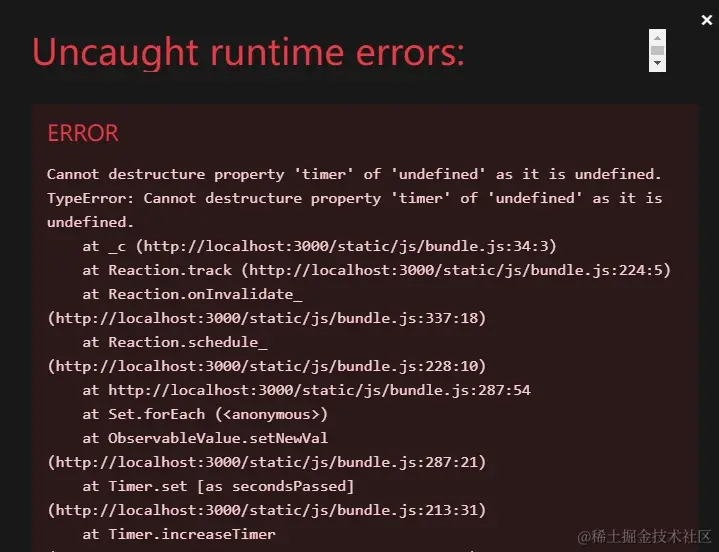 我们看到上述的例子其实就是 Mobx 官网的例子,我们把 Mobx 官网的例子跑起来,就说明我们手写的 Mobx 功能是成功的了。上述例子中,我们还需要实现一个函数 observer,我们可以参考上面实现过的 autorun 函数。