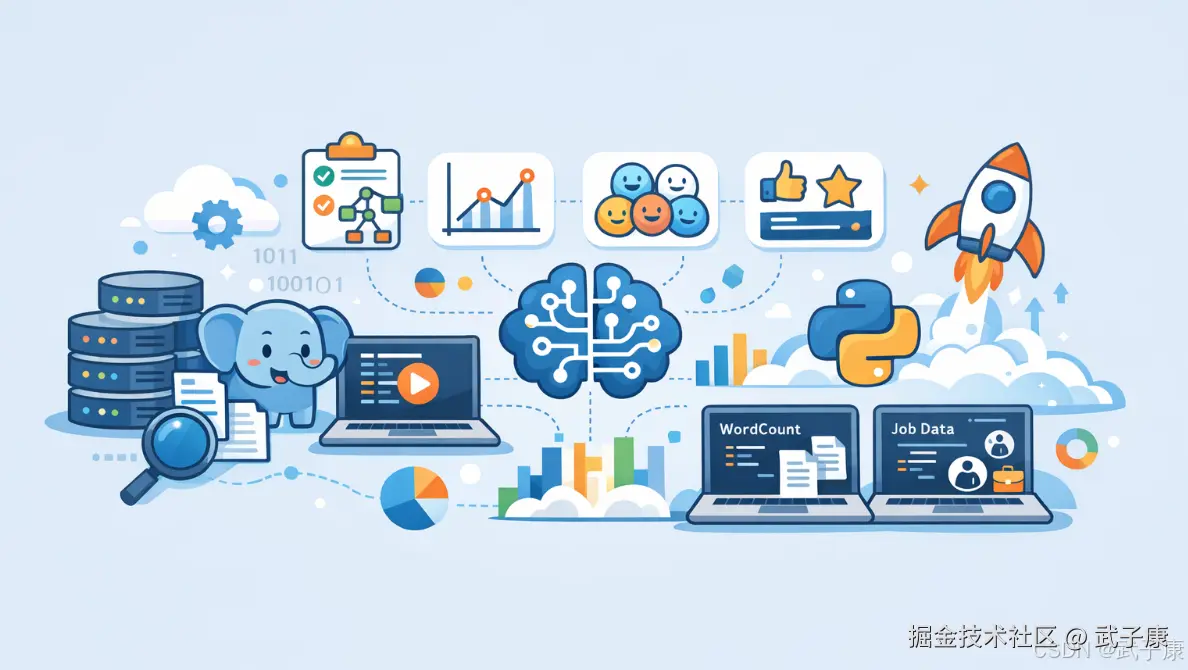 - 产出:WordCount 统计、职位投递数据分析两个完整 pyspark 代码示例,可直接运行