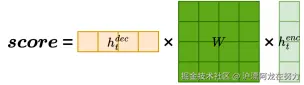 通俗解释 :先对编码器状态做一个线性变换(乘以矩阵W),把它的维度变成和解码器一致,然后再点积。