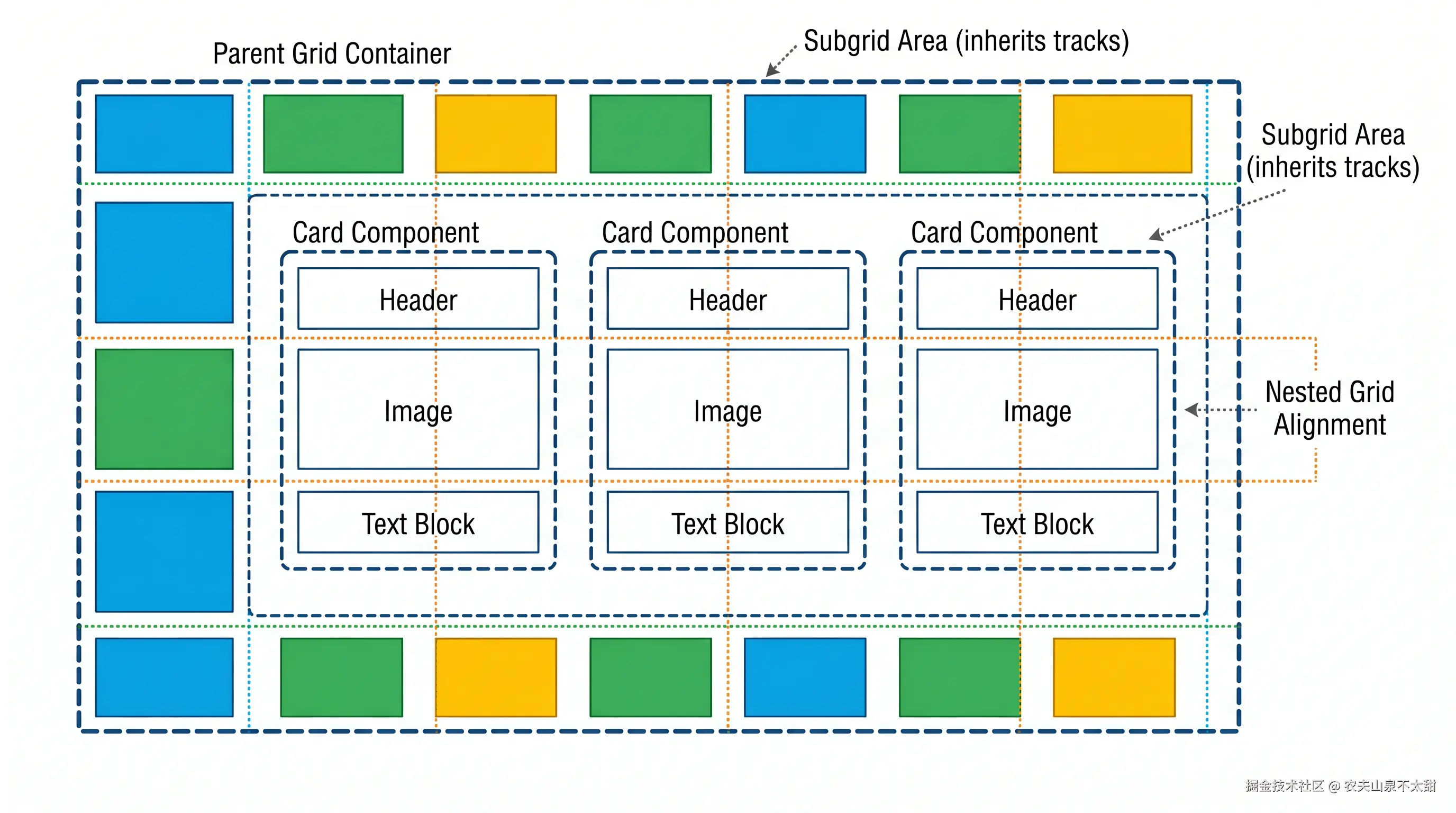CSS Grid 的出现简化了复杂布局的构建过程,而子网格的引入则解决了网格嵌套场景中的对齐难题。在子网格出现之前,如果需要在嵌套网格中保持与父网格的对齐关系,开发者通常需要重复定义相同的网格轨道,或者借助 JavaScript 来计算尺寸。子网格允许内层网格继承外层网格的轨道定义,实现了真正意义上的网格系统协调。