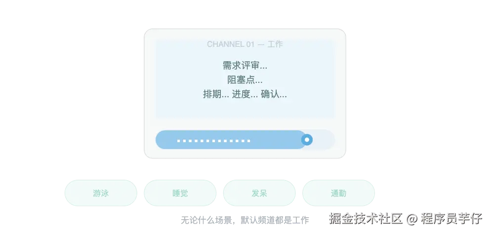 我后来意识到,这不是某个特定场景的问题。不是"游泳时容易想工作"或者"早上躺着容易想工作"的问题。而是------只要大脑没有被强制占用,它的默认频道就是工作。