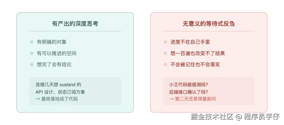 有创造性的深度思考 vs 无意义的等待式反刍------区分这两者,是我迈出的第一步。