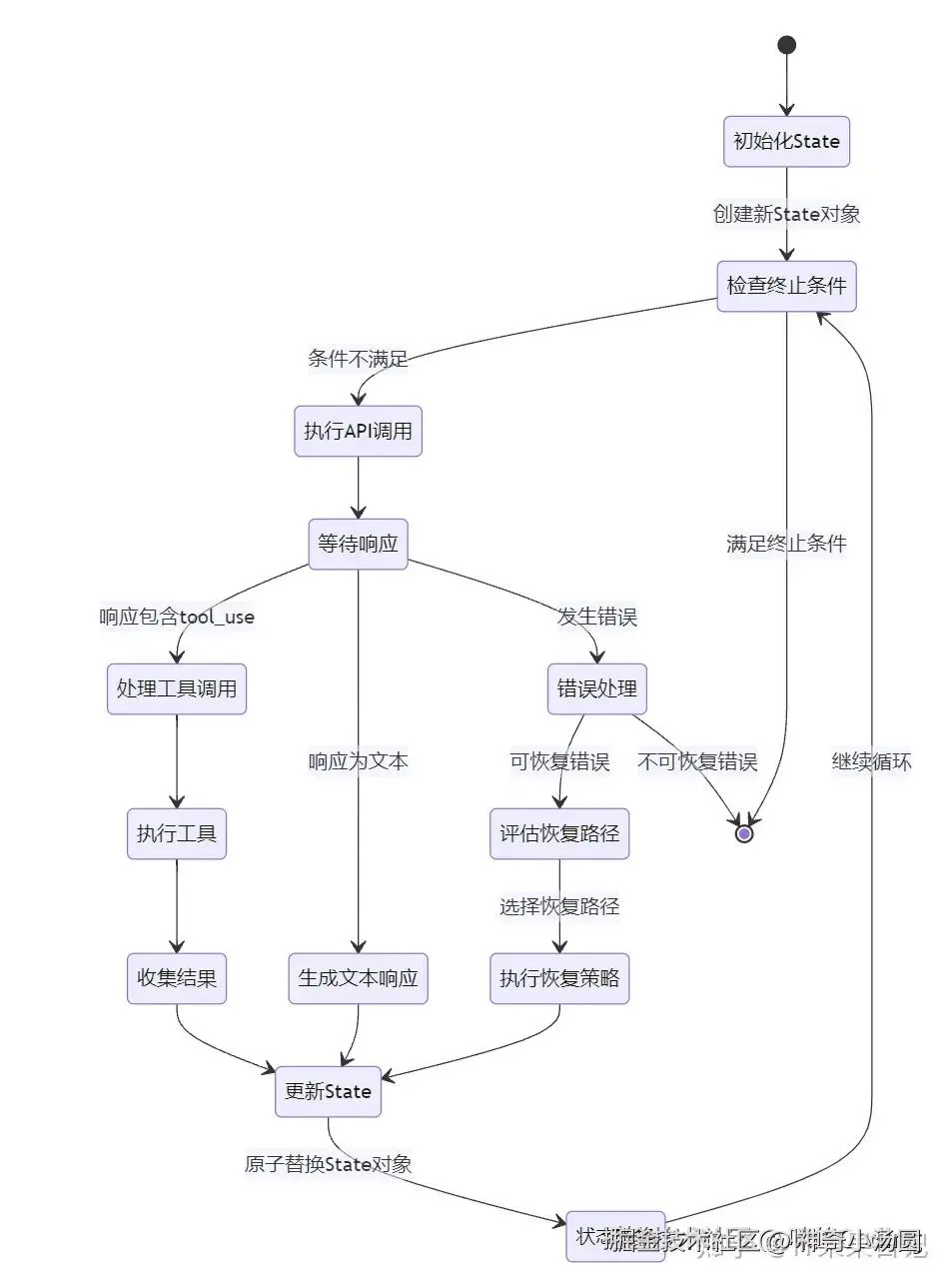 这种设计的好处是,所有状态的变更都是原子的:每次循环迭代,都是用一个新的 State 对象替换旧的,避免了多个独立变量修改时的遗漏问题,保证了状态的一致性。