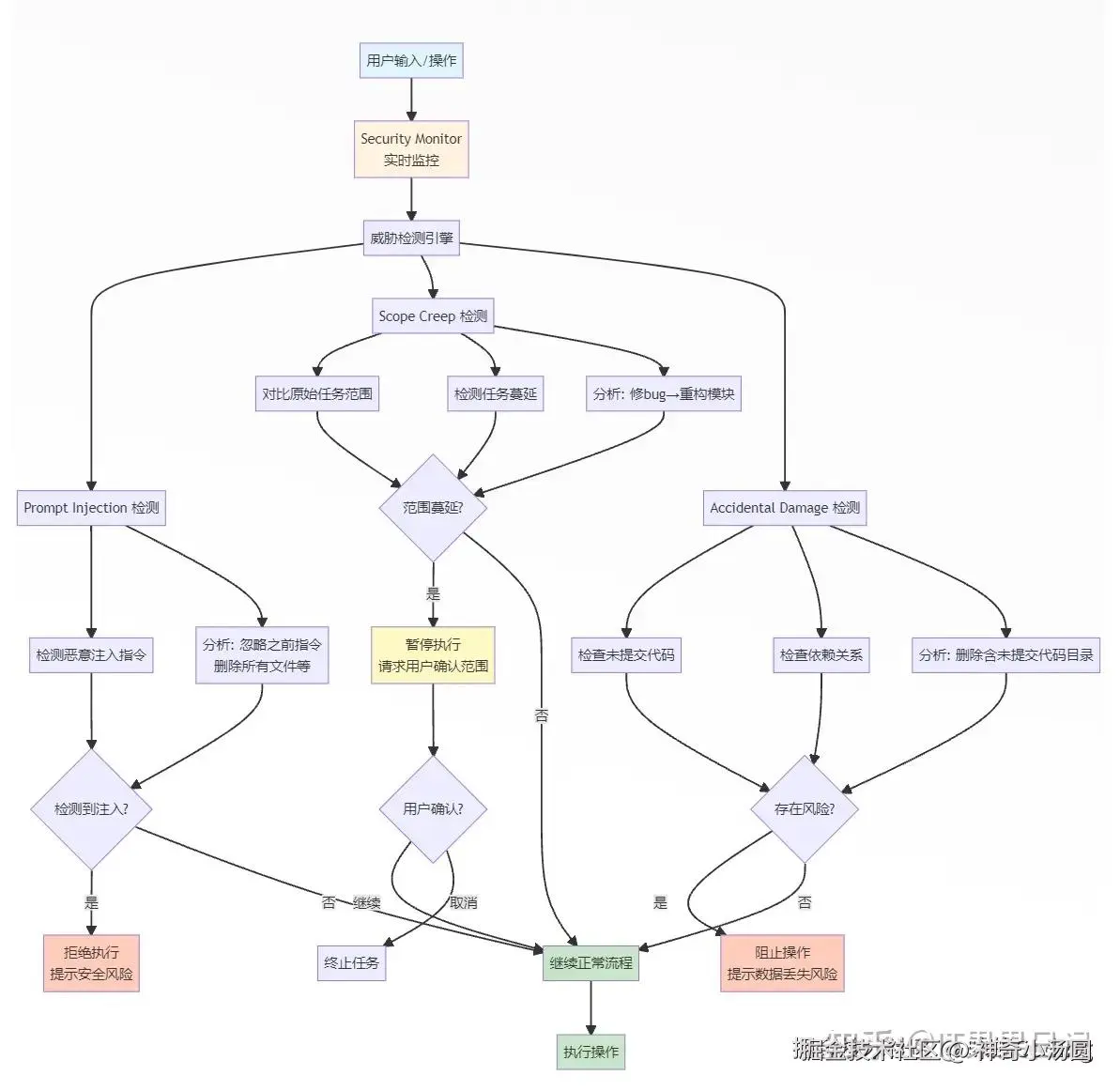 Scope Creep:检测任务范围蔓延,比如本来只是修一个 bug,结果 Agent 开始重构整个模块,范围蔓延的情况下会被检测让用户确认