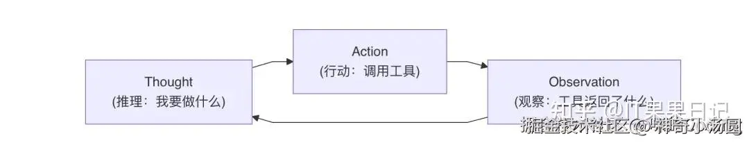 ReAct 模式是 2022 年提出的范式,核心是把每一步拆成 Thought(思考)、Action(动作)、Observation(观察)三步循环。