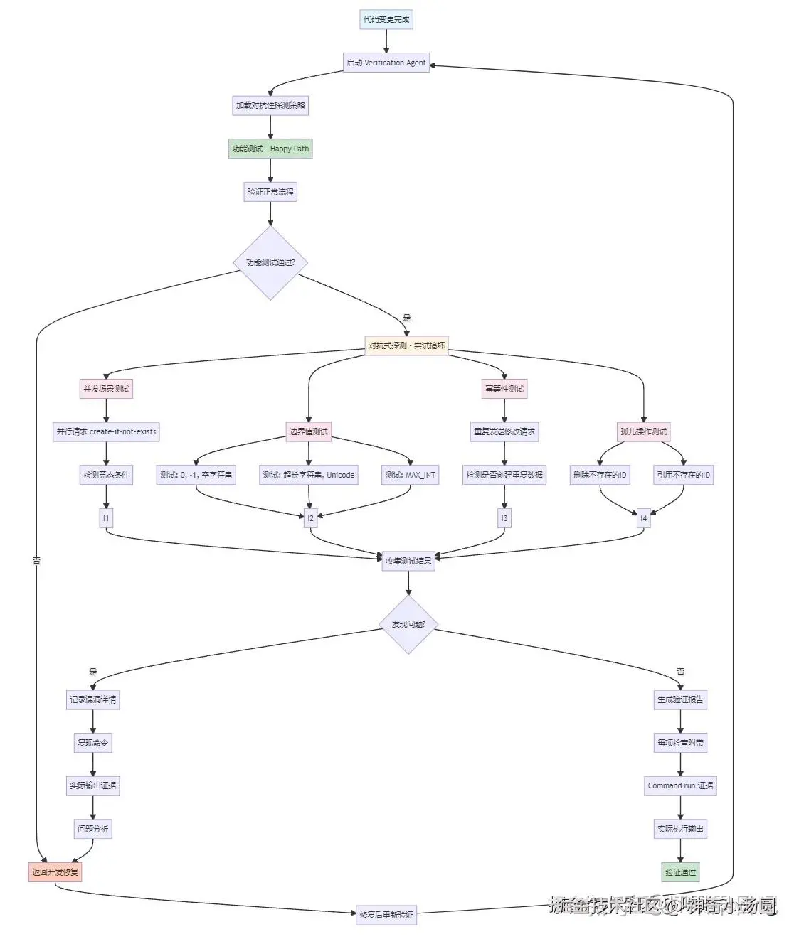 传统的测试思路是:写测试用例,验证功能是否正常。但 Verification Agent 的思路是:我要尽一切可能证明你的代码有问题。