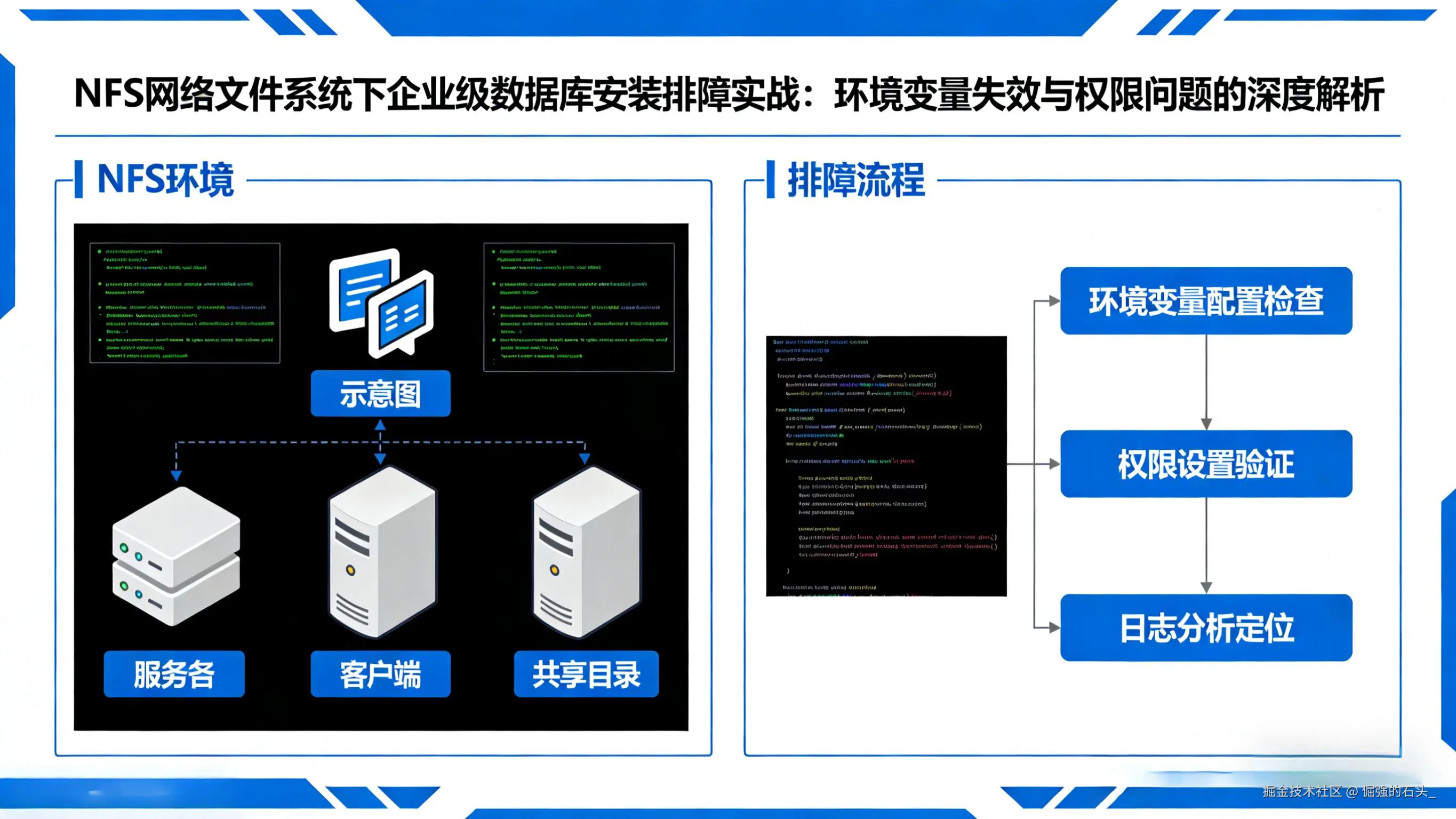 这篇东西从一起 KingbaseES 在NFS环境下的典型安装报错 说起,把问题的根因一层层扒开,给了从应急到根治的解决方案,还顺带整理了预防性的检查手段。核心内容回顾一下: