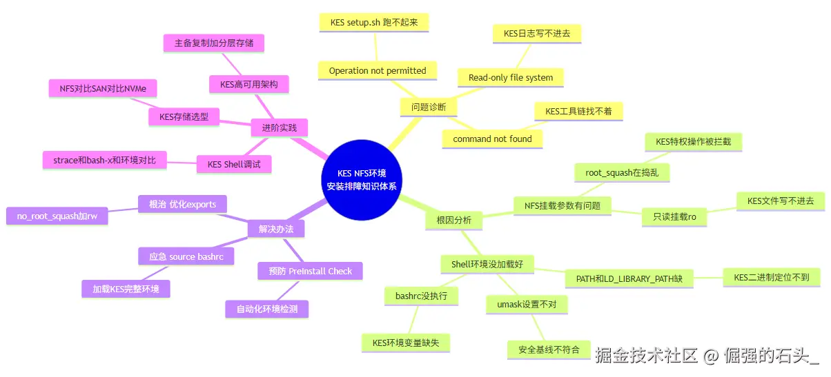 Operation not permitted报错当引子,把问题的来龙去脉一层层剥开讲清楚,顺便整理了一份 KES安装前的环境检查清单 、一套 NFS存储下的部署策略 ,以及日常运维中 排查Shell脚本报错 的实用技巧。